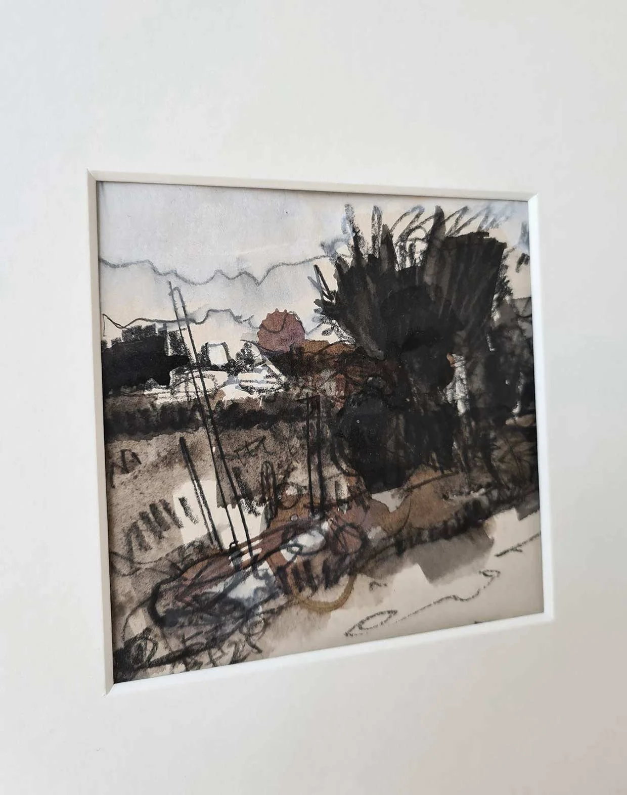 This small painting is mounted onto archival board, wrapped in cellophane, bubble wrapped and placed, unframed, within a cardboard box.