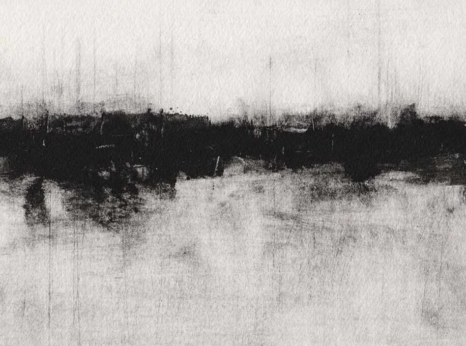 Process: It was created by using dry point lines scratched onto a metal plate and then inking up the plate cleanly before adding more ink to the surface in a painterly way. I may repeat the processs a few times before printing it with my etching press.